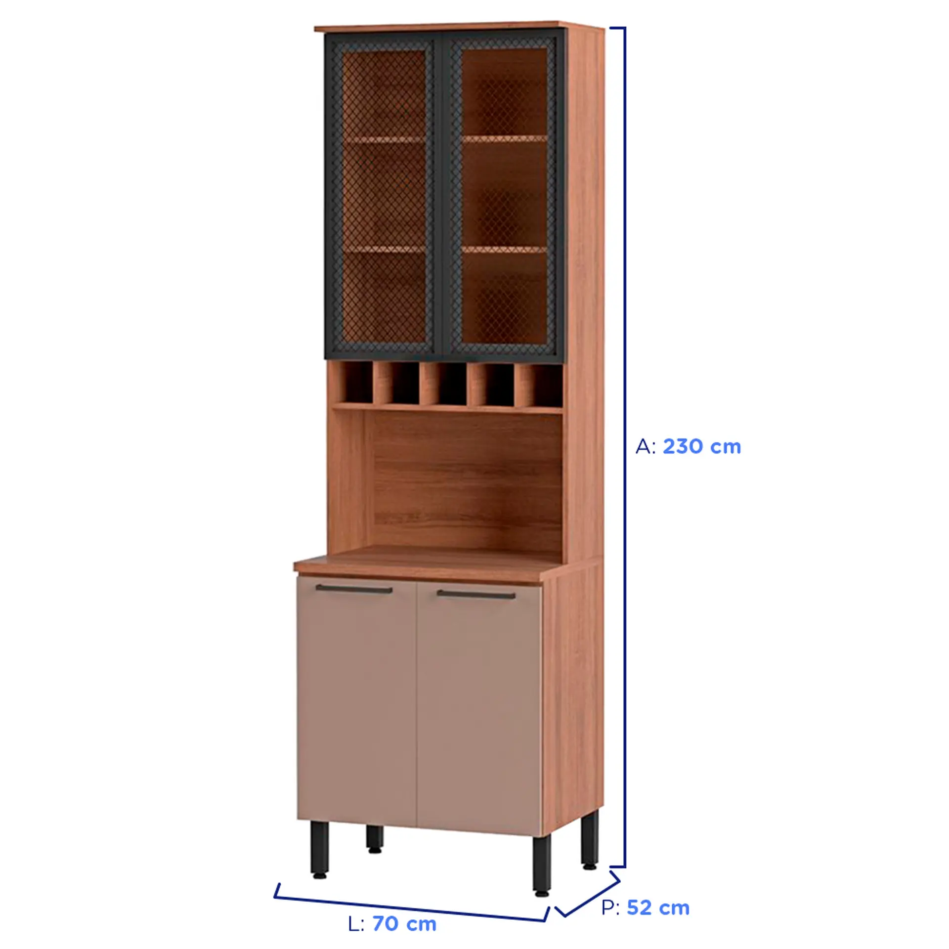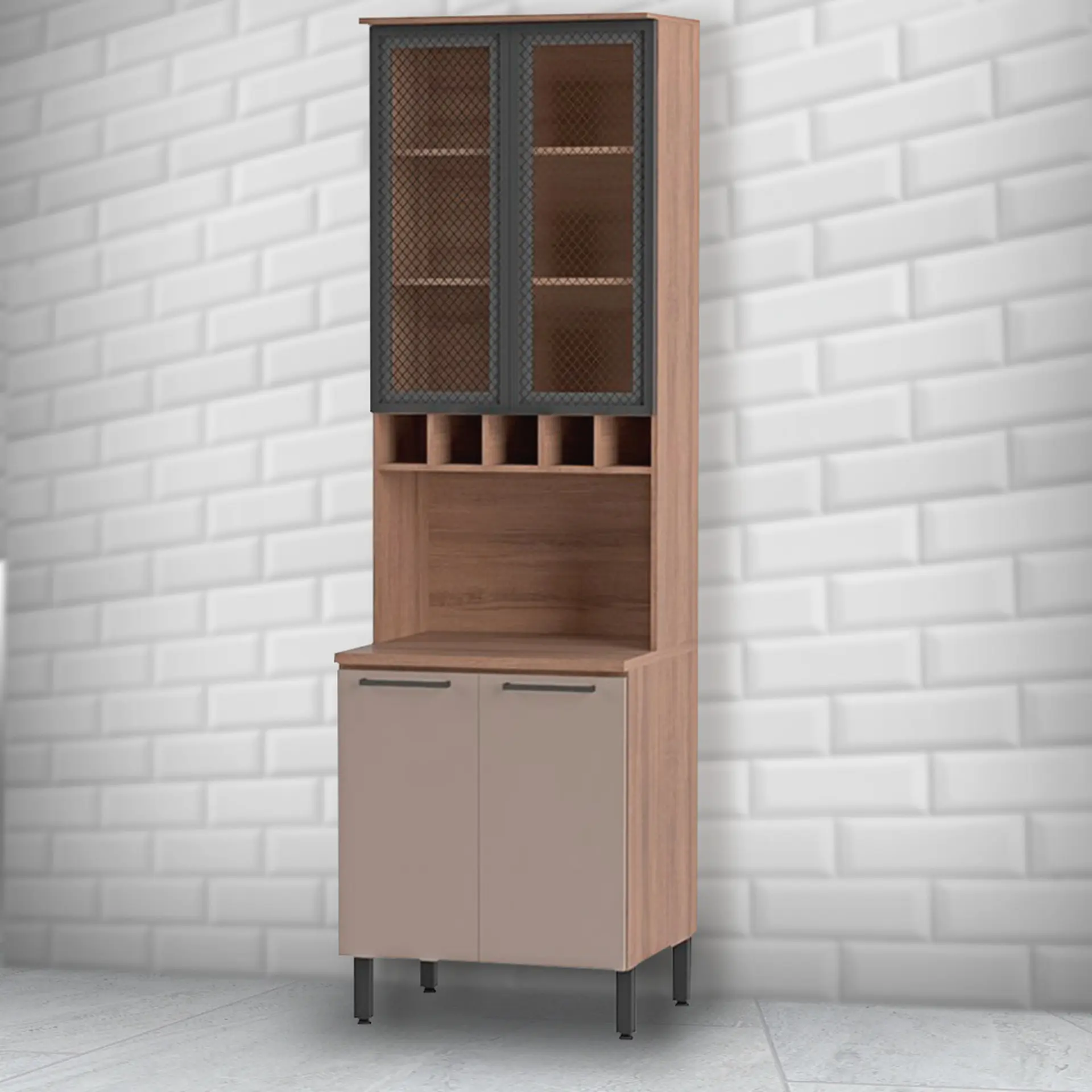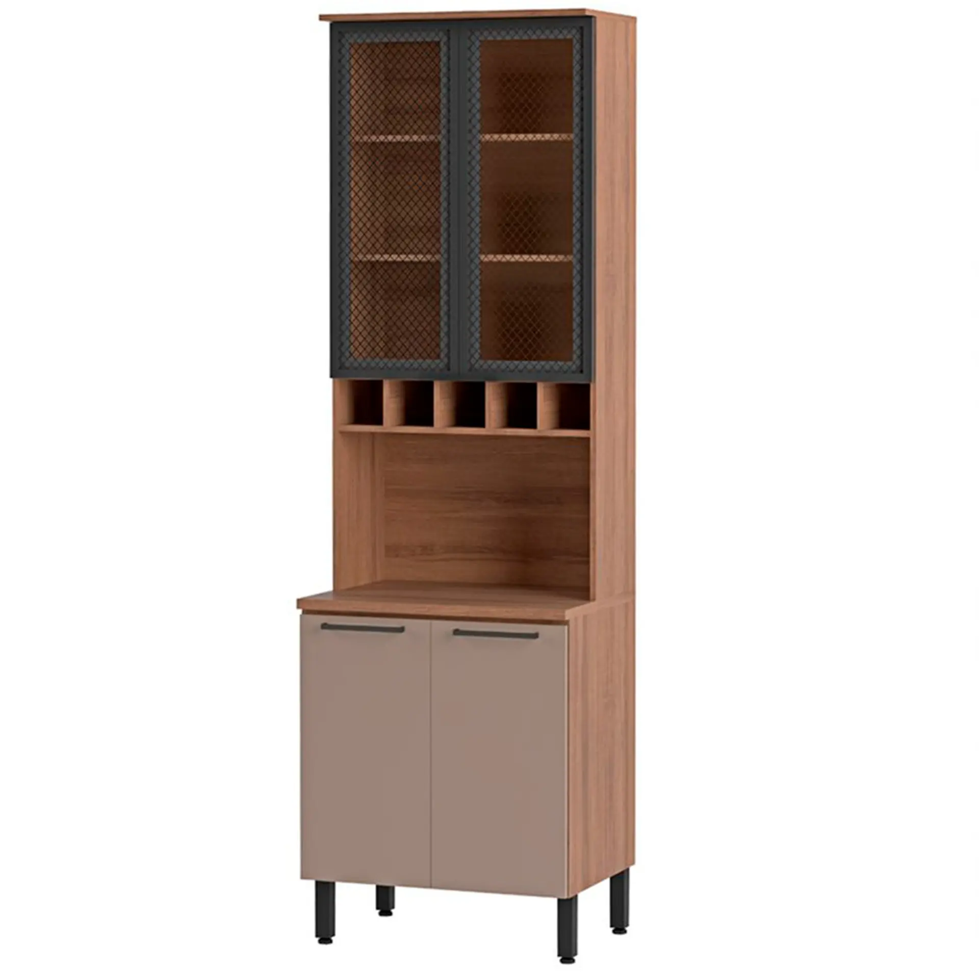 Deixe sua cozinha ainda mais moderna, bonita e completa com o Paneleiro Caiena! Confira mais detalhes: Espaço funcionalEle conta com 4 portas, sendo duas delas de vidro temperado e serigrafado, recheado com 3 prateleiras internas, 5 nichos ideais para garrafas, além de um tampo com espaço para micro-ondas ou deações! Tudo isso para você guardar e organizar seus utensílios domésticos. Materiais de qualidade Sua estrutura é toda em MDP, material de alta qualidade e resistência. Os vidros temperados na porta, além de modernidade proporcionam mais durabilidade. E tem mais, com as dobradiças metálicas com amortecedor slow motion, que garantem mais suavidade para abrir e fechar as portas. Sobre a marca: qualidade Telasul! Com quase 50 anos de história, a Telasul é uma das maiores representantes no mercado de cozinhas de aço. Beleza e qualidade é o que não vai faltar aos lares de todo o Brasil e outros países. Suas cozinhas são produzidas em diversas es e adaptáveis para qualquer necessidade. Transformar os momentos na cozinha em pura felicidade é o lema que Telasul carrega, sempre visando em oferecer o melhor para sua casa.