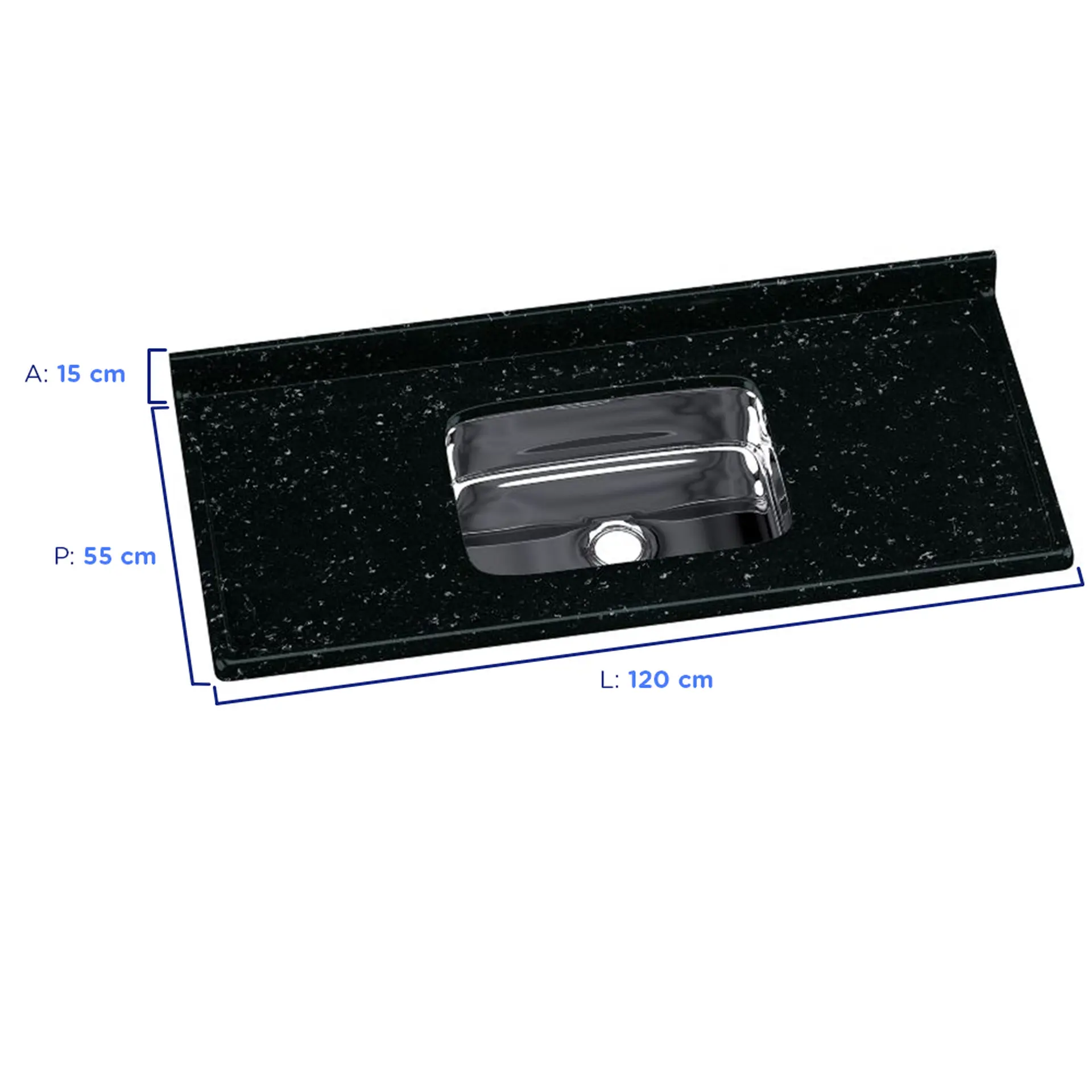 Pia de Mármore Sintético com Cuba de Aço Inox 120cm Rorato Roralit – Preto