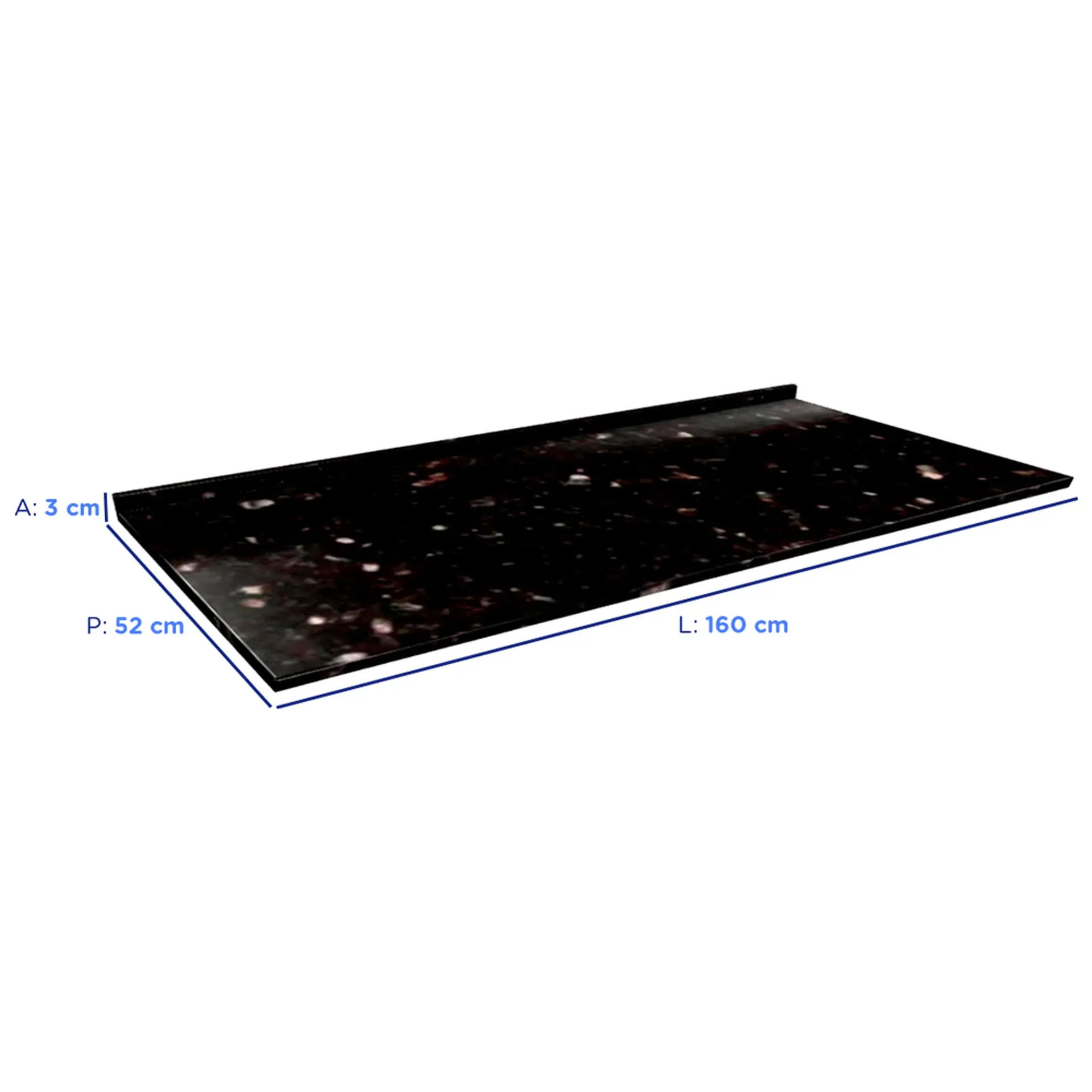 Tampo de Fórmica Granito Auto Brilho 160 cm Telasul – Preto Cód.